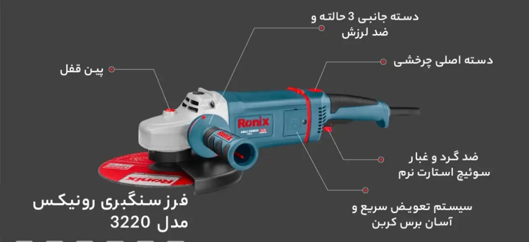فرز سنگبری رونیکس ظرفیت ۲۴۰۰ وات سایز ۲۳۰ میلیمتر کد 3220